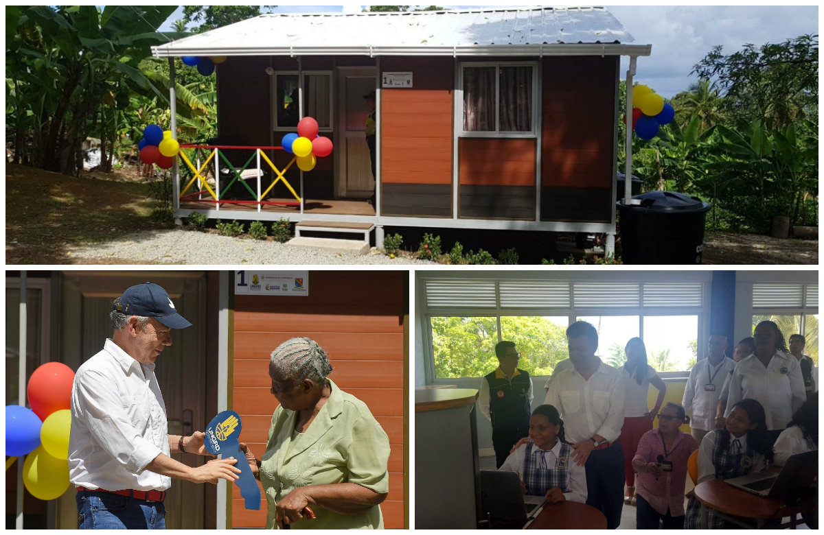 El primer proyecto visitado por el jefe de estado fue el Programa de Vivienda Rural de interés social en San Andrés. Allí entregó la primera casa a la señora Ketura Kelly, a quien el Presidente le prometió un nuevo hogar, después de que lo perdió todo en un incendio.